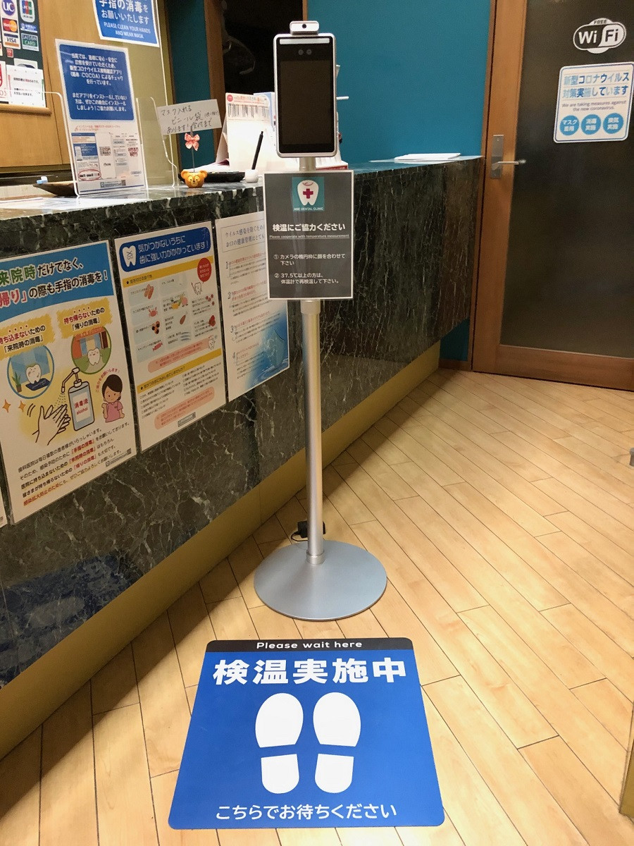 新型コロナウイルス感染症予防対策として瞬間測定 AI顔認識温度検知 カメラを設置! 2020/10/15 37.5度以上の体温の場合、色とアラートでお知らせします。 顔が2/3以上露出している場合、マスクの上からでも非接触で自動検知します。 AIカメラが顔を自動認識し、瞬時に表面温度を検知します。