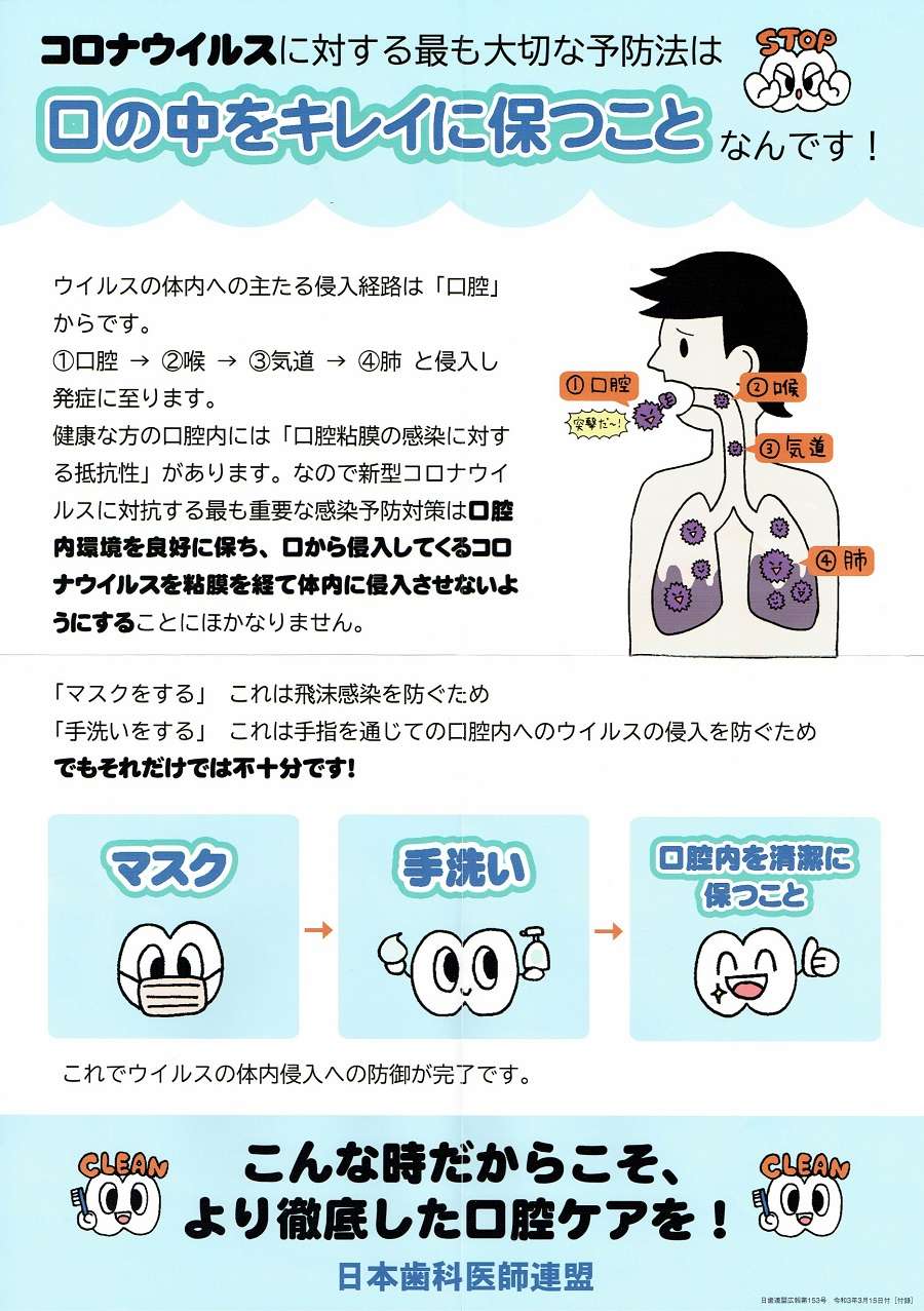 コロナウイルスに対する最も大切な予防法は口の中をキレイに保つことなんです!