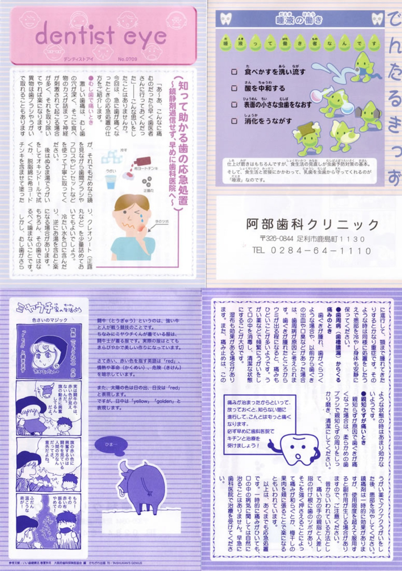 知って助かる歯の応急処置 ◆むし歯で痛い時 ◆歯周病(歯槽膿漏)から来る痛みの時 ◆親知らずが痛い時 唾液の働き