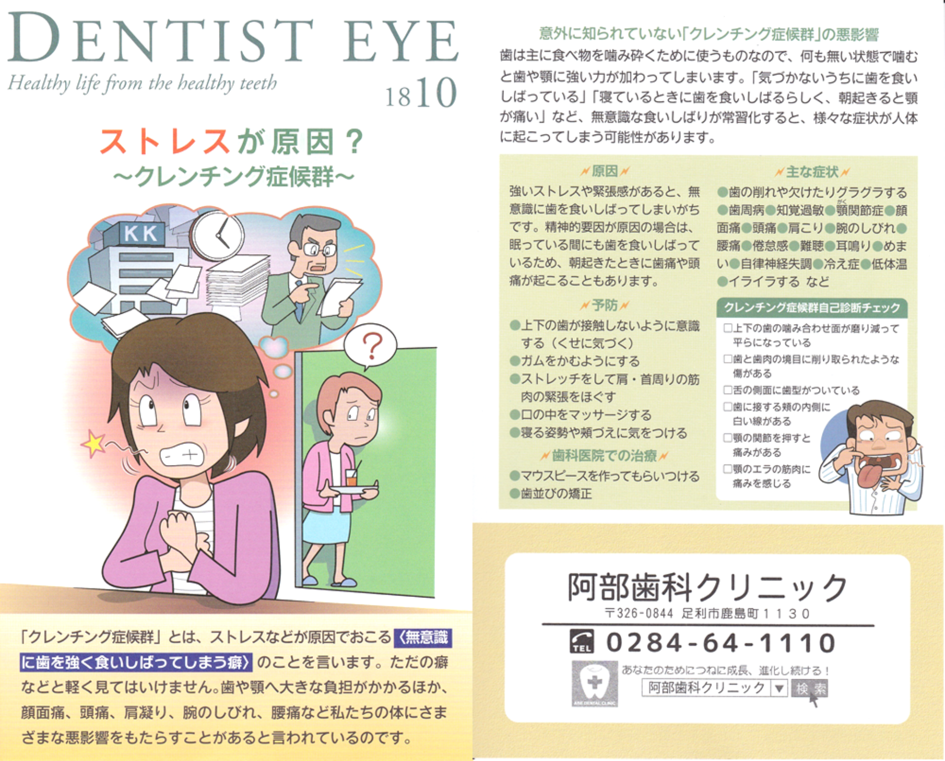 ストレスが原因?~クレンチング症候群~ ◆意外に知られていない「クレンチング症候群」の悪影響