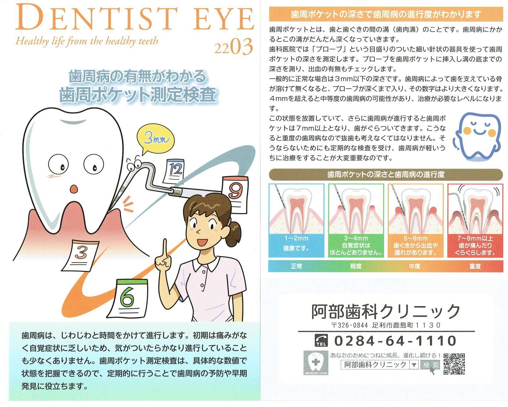 歯周病は、じわじわと時間をかけて進行します。初期は痛みがなく自覚症状に乏しいため、気がついたらかなり進行していることも少なくありません。歯周ポケット測定検査は、具体的な数値で状態を把握できるので、定期的に行うことで歯周病の予防や早期発見に役立ちます。