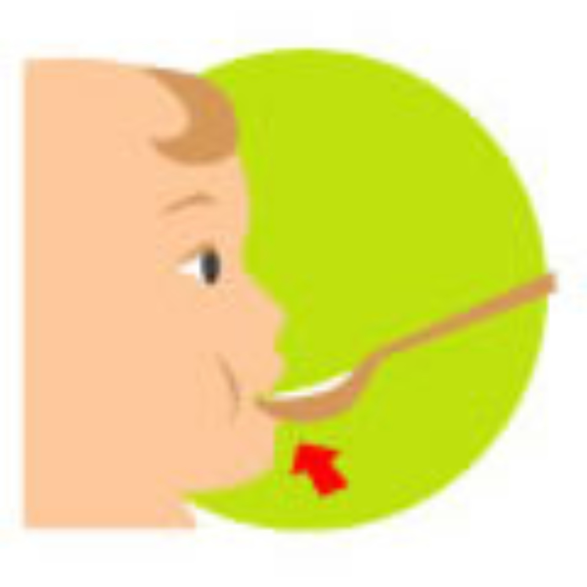 スプーンを使うときは、赤ちゃんの下唇の当てるようにし、赤ちゃんが自分の力で吸い取るようにしましょう。 口の中に食べ物を入れてはいけません。 |