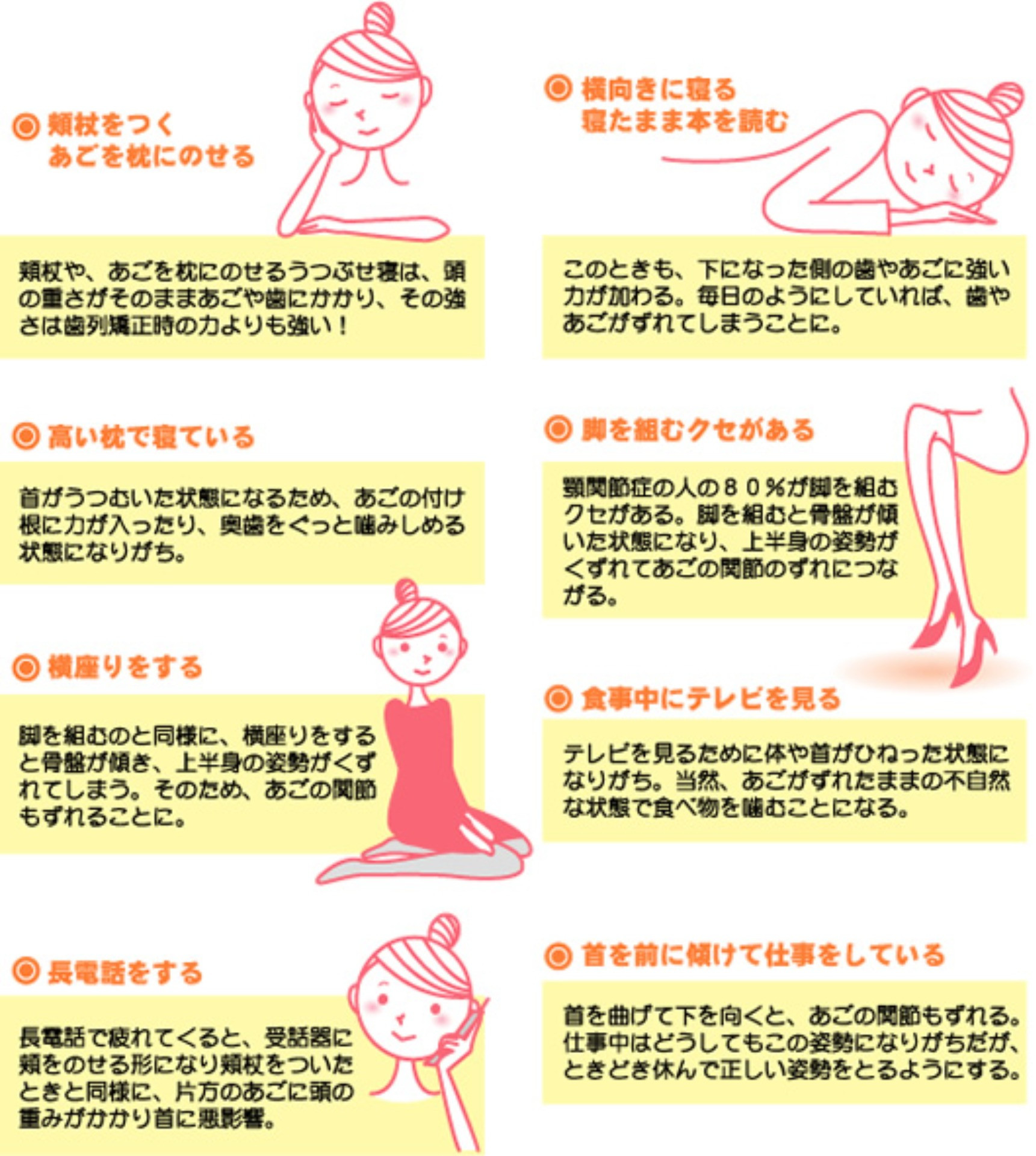 あなたのあごもずれているかも!? 2019/12/16 こんなクセはすぐに止めましょう!・・・顎関節症にならないために。 原因の多くは、あごの関節をずらしてしまうちょっとしたクセ。あなたもしていませんか? 顎関節症治療