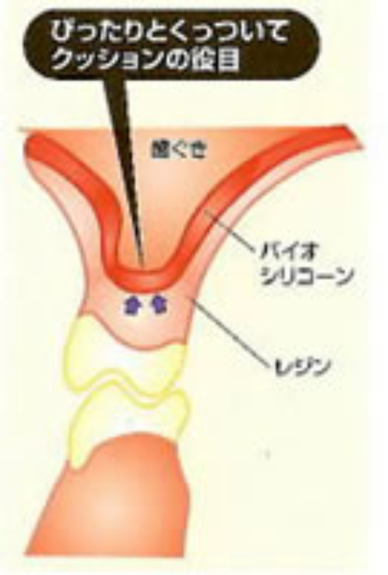 体温により軟化し歯ぐきに吸い付きます。顎の骨が薄くなった方や入れ歯が合わない方にお勧めいたします。 |