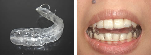 丸山先生が考案したこの装置を、MPA(前述のマンディブラー・ポジショニング・アプライアンスは下あごを正しい位置に位置づける装置)と名づけました。この装置は、その後、治療効果を高めるため、MFA(マンディブラー・フィクシング・アプライアンス)という装置を考案し、使用しています。このMFAは透明のアクリル樹脂製で、脱着可能、厚さが約2~3mm、日常会話はやや不便ですがそれほど違和感はありません。