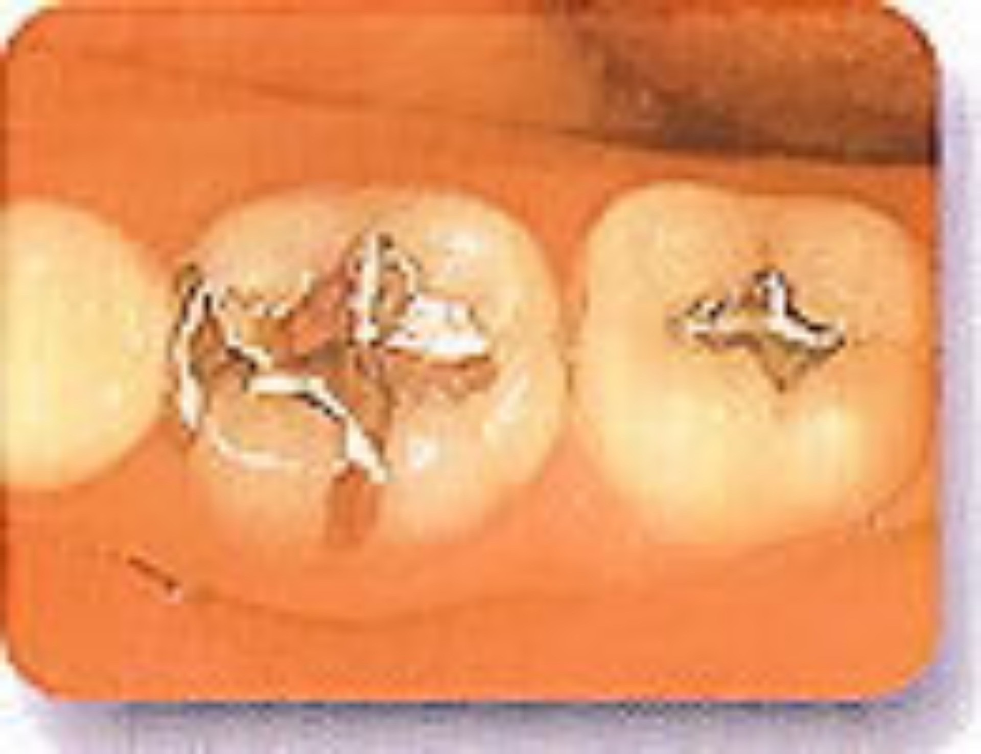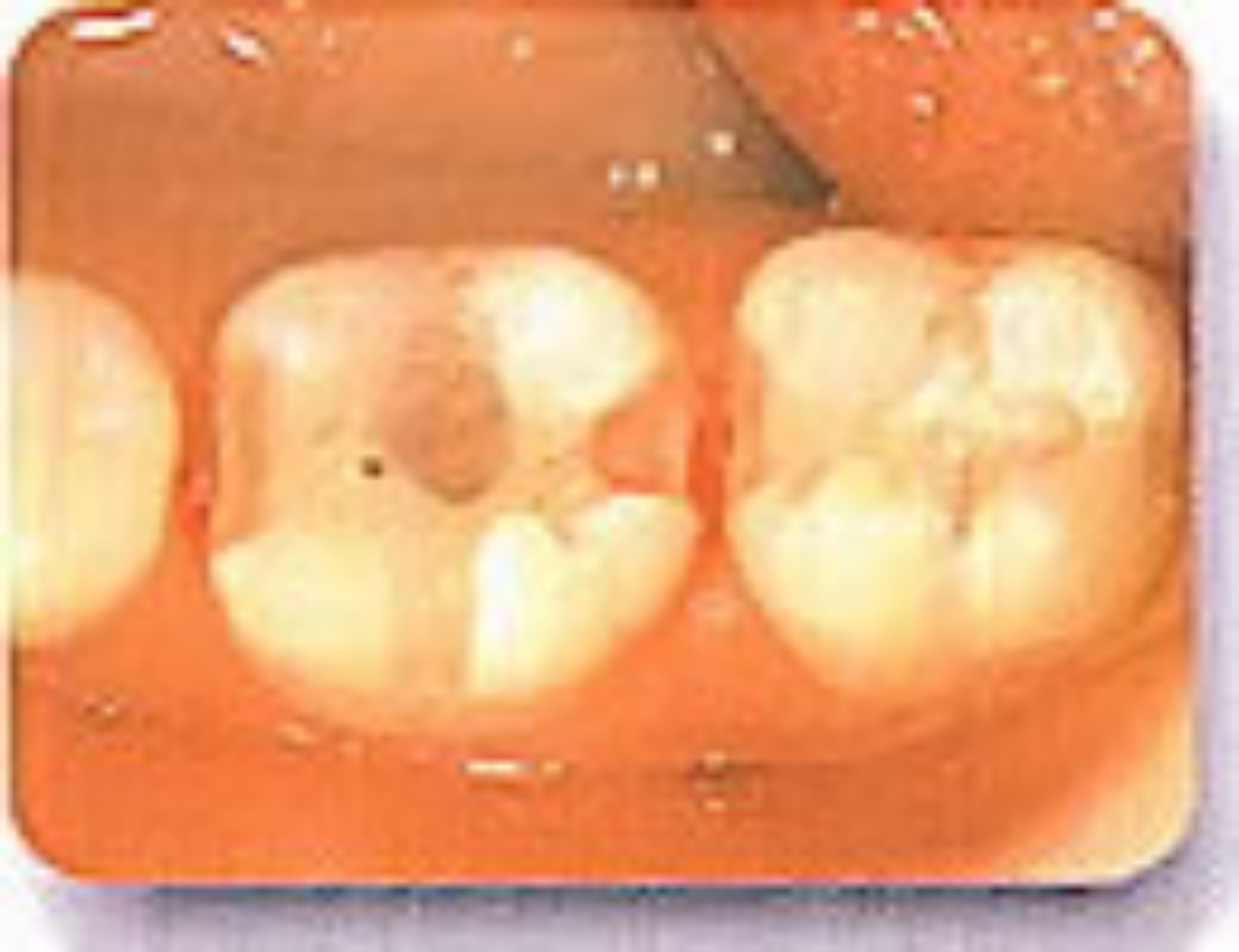 以前のむし歯治療で金属インレー(小さなつめ物)が入れてあります。 |