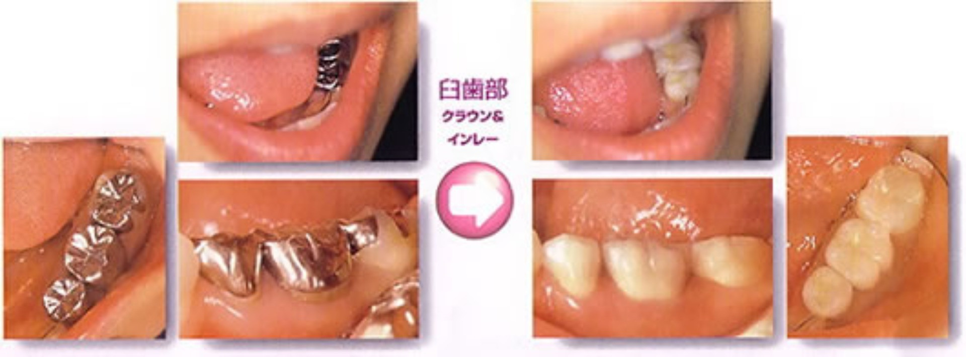 歯と同様の色調で修復する美しい前歯は、もう当たり前の時代です。さらに見えにくい奥歯も白くきれいにしてみたいと思いませんか?